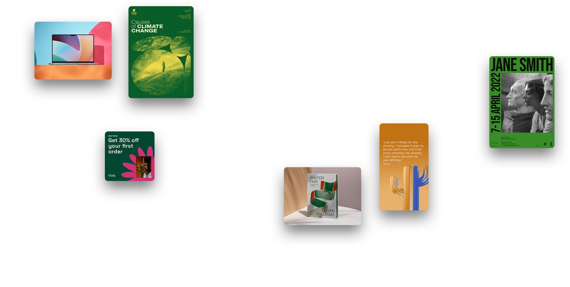 Create eye‑catching designs with ease using stunning design templates and see them come to life in beautiful, fully‑customizable mockups.