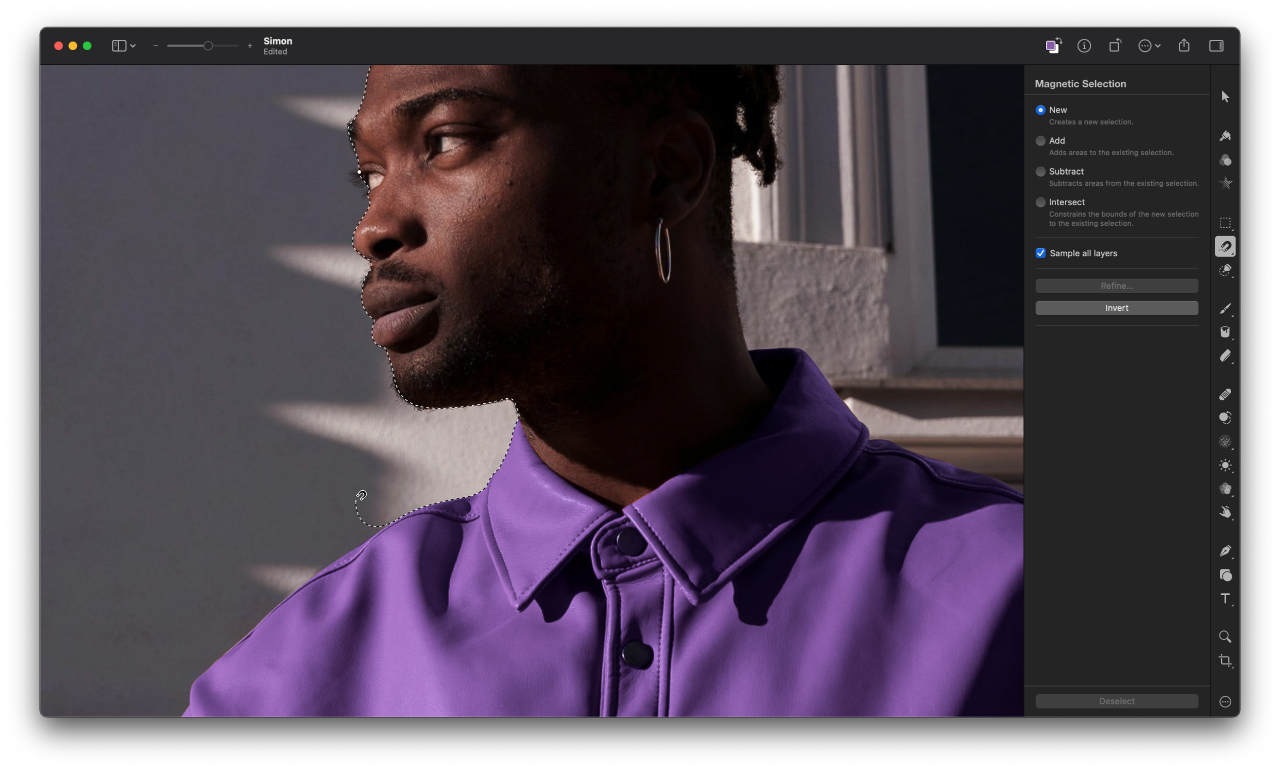 With a collection of pixel-accurate selection tools powered by state-of-the-art technology, Pixelmator Pro lets you pick out and edit precise parts of your images with ease. So you can apply color adjustments and effects to specific areas. Select and copy objects from one image to another. Or focus all edits on a precise area without affecting the rest of the image.