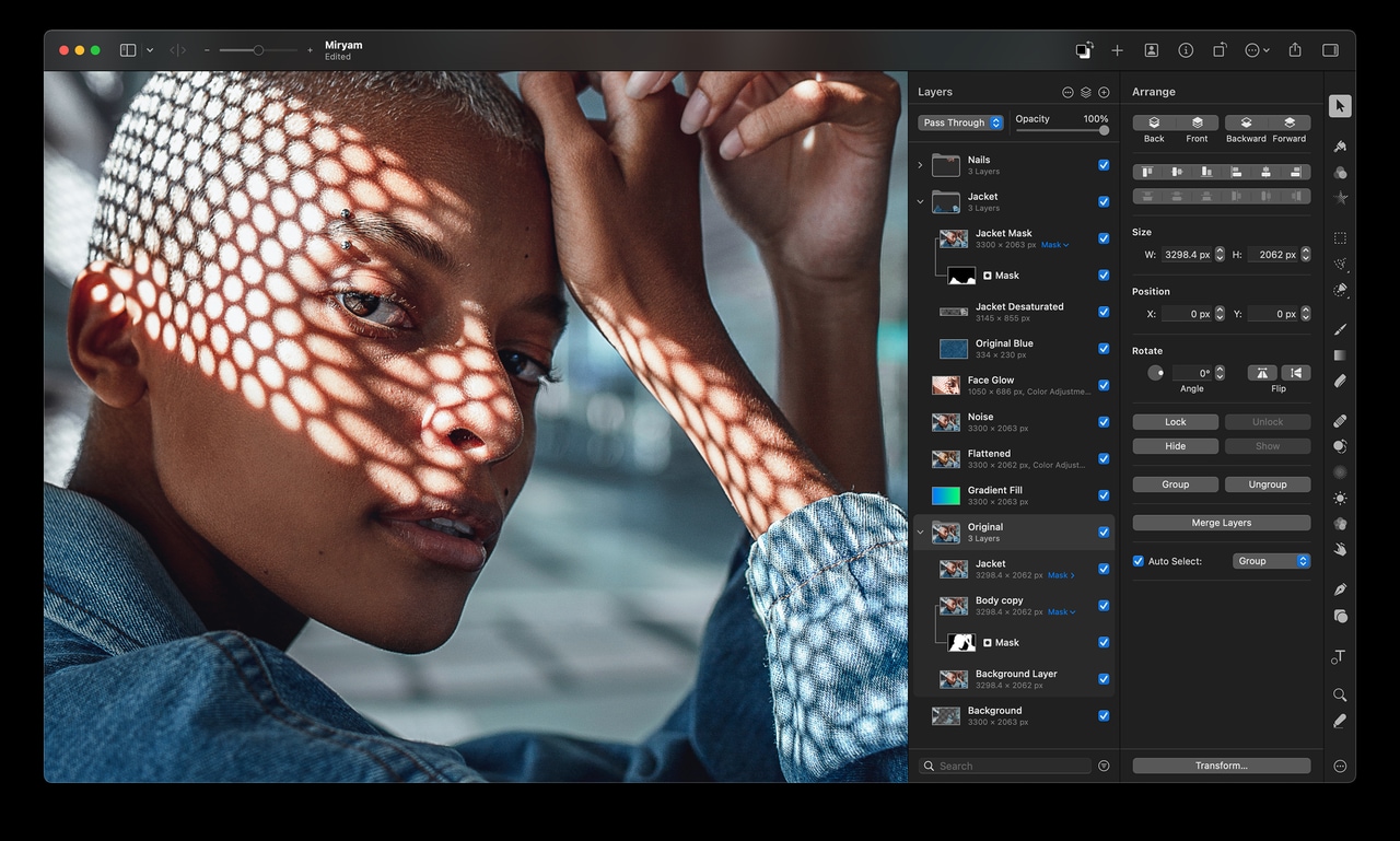 Whether you’re working on a design for a poster, a webpage, or a blockbuster app, you’ll make your ideas come to life in Pixelmator Pro. With smart spacing guides, advanced alignment tools, and blazing fast performance, you can harness the full power of layer-based editing.