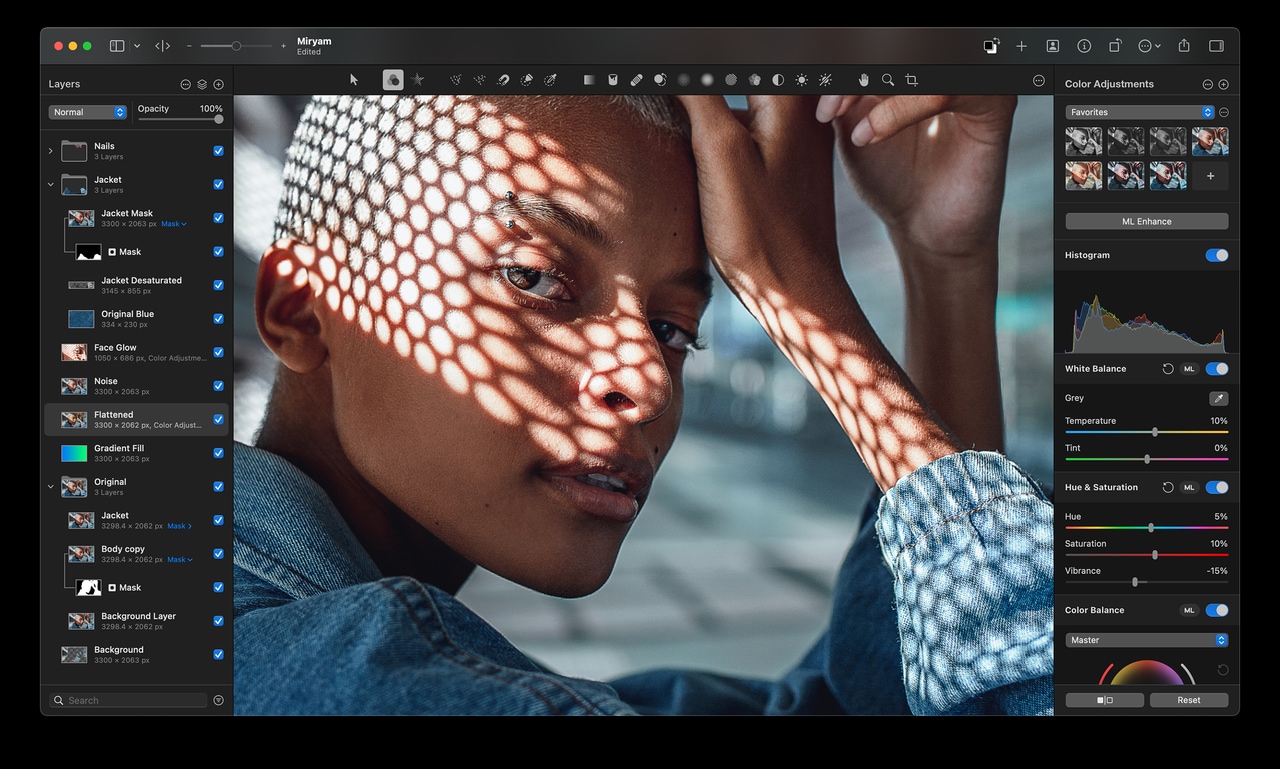 Pixelmator Pro is an image editor designed to make the most powerful professional image editing tools accessible to everyone. And with an extensive collection of tools for editing and retouching photos, creating graphic designs, painting, drawing vector graphics, and adding stunning effects, it’s the only image editor you’ll need.